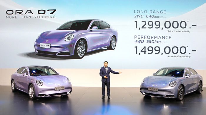 เกรท วอลล์ มอเตอร์ เปิดราคา ORA 07 รุ่น LONG RANGE ราคา 1,299,000 บาท และรุ่น PERFORMANCE ราคา 1,499,000 บาท