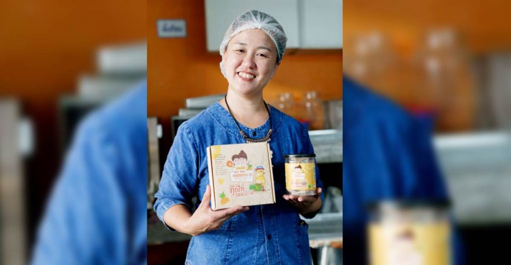 เกศรินทร์ กลิ่นฟุ้ง หรือแม่หนิง ใช้พลังหญิงของความเป็นแม่ ก้าวข้ามทุกอุปสรรค ทำให้ชีวิตตัวเอง ครอบครัว และชุมชนดีขึ้น ภายใต้สโลแกน “ขนมทุกคำมั่นใจได้ถึงคุณภาพ เสมือนแม่ใส่ใจทำขนมให้ลูกกิน” จากเดิมที่ทำขนมพายสับปะรดเป็นรูปรังไหม ซึ่งมีขายทั่วไปเห็นอยู่ดาดดื่น แม่หนิงได้คำตอบจากการเข้าร่วมโครงการพลังชุมชน ว่าจะสร้างความแตกต่างจากคนอื่นได้อย่างไร จึงได้พัฒนาพายสับปะรดรูปไก่ ซึ่งเป็นสัญลักษณ์ของลำปางขึ้นมา กว่าจะได้ดีไซน์และเนื้อแป้งที่ลงตัวไม่ง่ายเลย แต่แม่หนิงก็พยายามจนได้ขนมพายสับปะรดรูปไก่ ที่หอมเนย แป้งนุ่ม ไส้รสชาติกลมกล่อม อร่อยล้ำจนได้นำขึ้นโต๊ะงานประชุม APEC 2022 Thailand และยังพัฒนาพื้นที่บ้านของตัวเองเป็นโรงงานผลิตขนมจัดการตามระบบเพื่อขอมาตรฐานอย. อีกด้วย