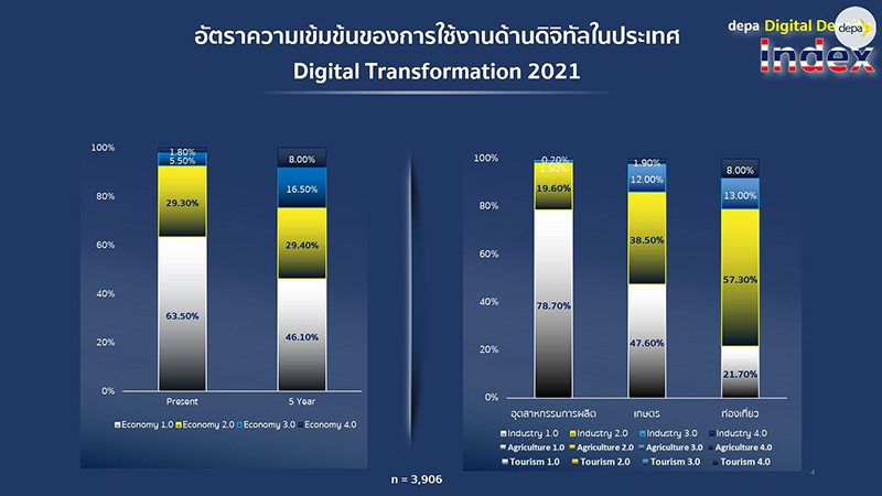 “แม้ภาพรวมการใช้เทคโนโลยีดิจิทัลในภาคเศรษฐกิจหลักของประเทศอย่างอุตสาหกรรม เกษตรกรรม และการท่องเที่ยวยังอยู่ในระดับเศรษฐกิจ 1.0 – 2.0 แต่มีแนวโน้มปรับตัวสูงขึ้น อีกทั้งส่งสัญญาณบวกต่อการขับเคลื่อนเศรษฐกิจไทยสู่เศรษฐกิจ 4.0 หลังสถานการณ์โควิด-19 คลี่คลาย