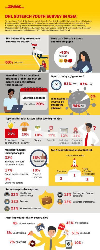 The three-week online study saw close to 950 responses from young people above 15 years of age across seven countries – Cambodia, India, Indonesia, Malaysia, Sri Lanka, Thailand and Vietnam. This study was done as part of DPDHL Group’s GoTeach program with the support of its global partners Teach For All network and SOS Children’s Villages.